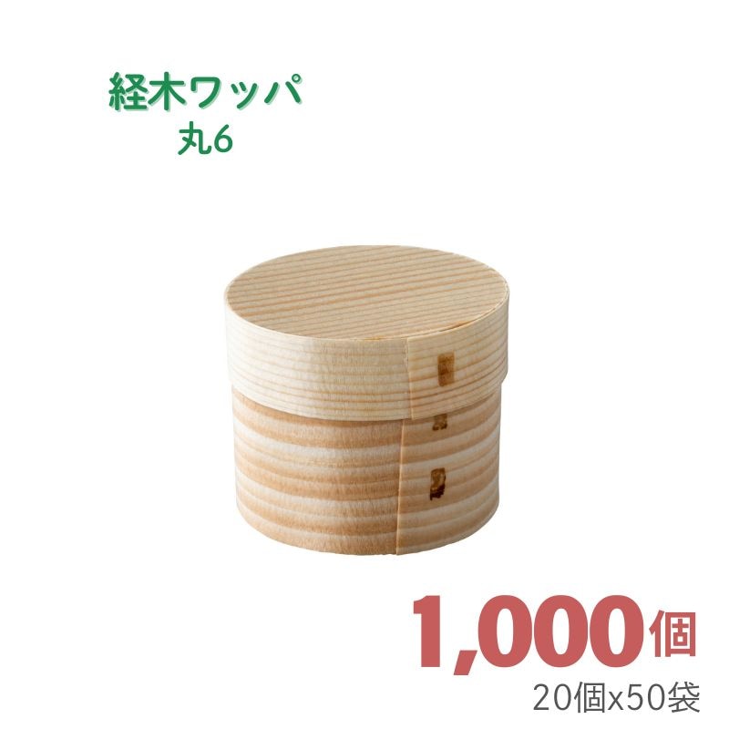 | 木製 | 5646 | 経木ワッパ 丸6 | ベタ底 | 1,000 | φ52×H40/55×H14㎜ |