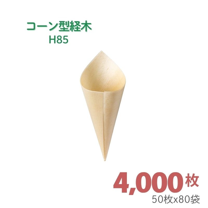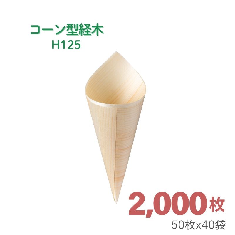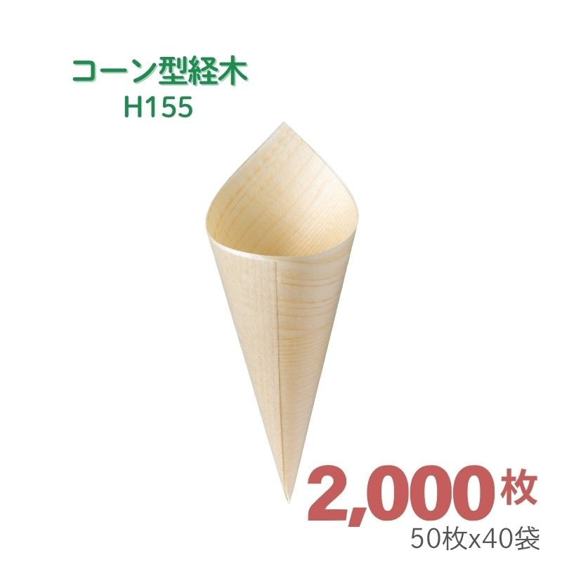 アサヒグリーン コーン型経木 H125[2,000枚入]天然素材の使い捨て経木で、清潔&便利に