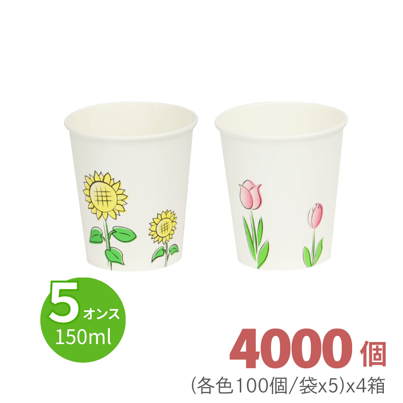 ファーストレイト 紙コップ チューリップ&向日葵 5オンス (150ml) FR-5362[4,000個入]