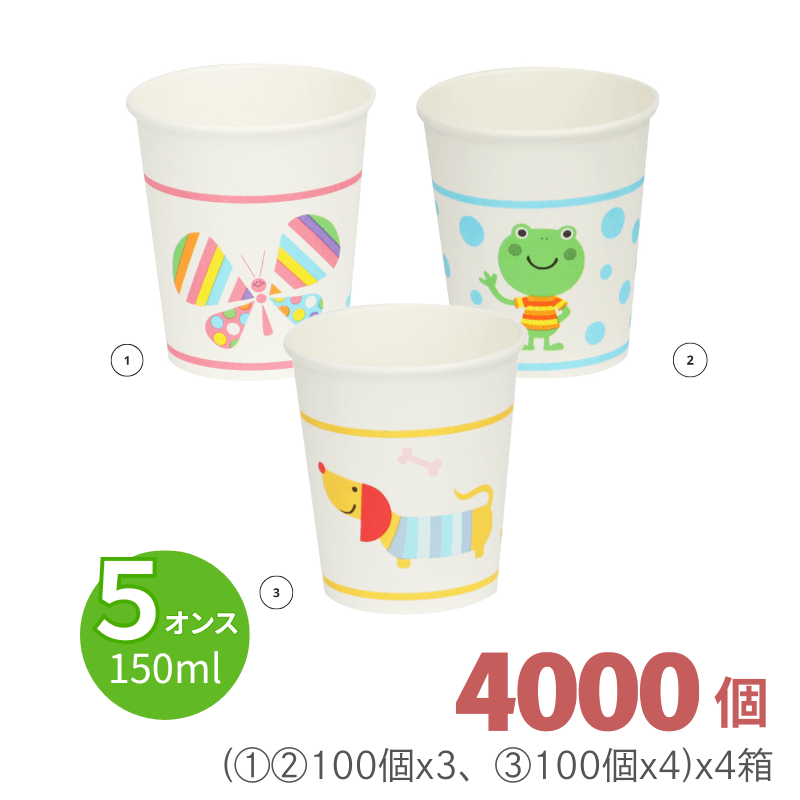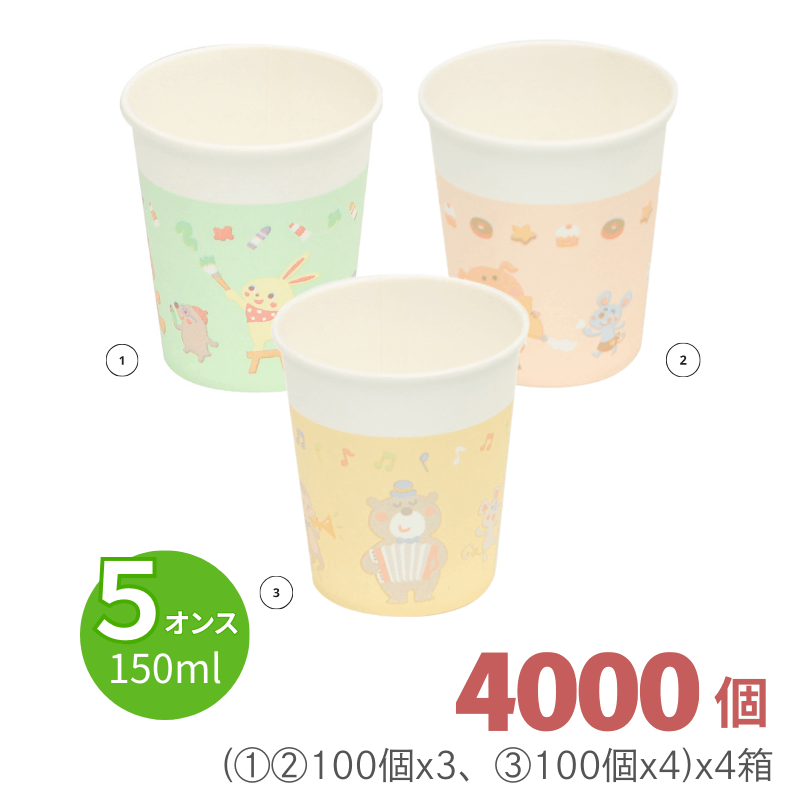ファーストレイト 紙コップ 森のおともだち 5オンス (150ml) FR-5367[4,000個入]