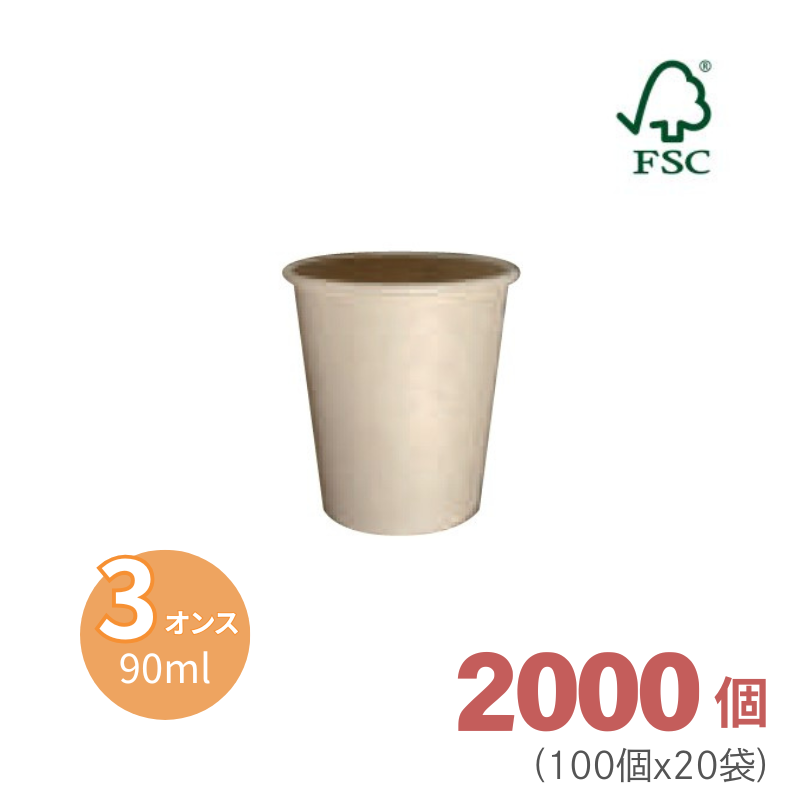 ファーストレイト 紙コップ F未晒しコップ(FSC認証)3オンス (90ml) FR-5634[2,000個入]
