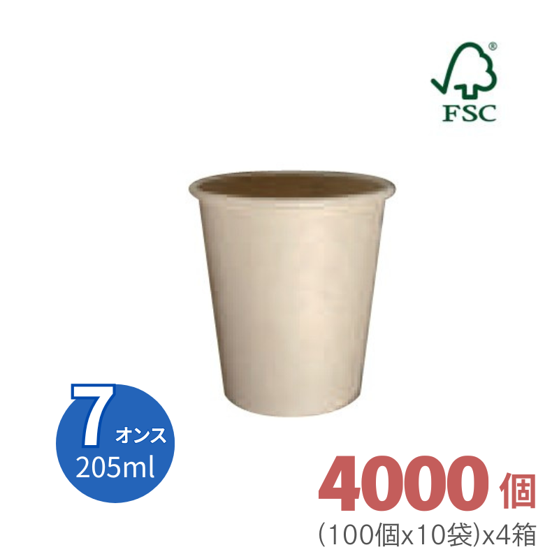 ファーストレイト 紙コップ F未晒しコップ(FSC認証)7オンス (205ml) FR-5636[4,000個入]