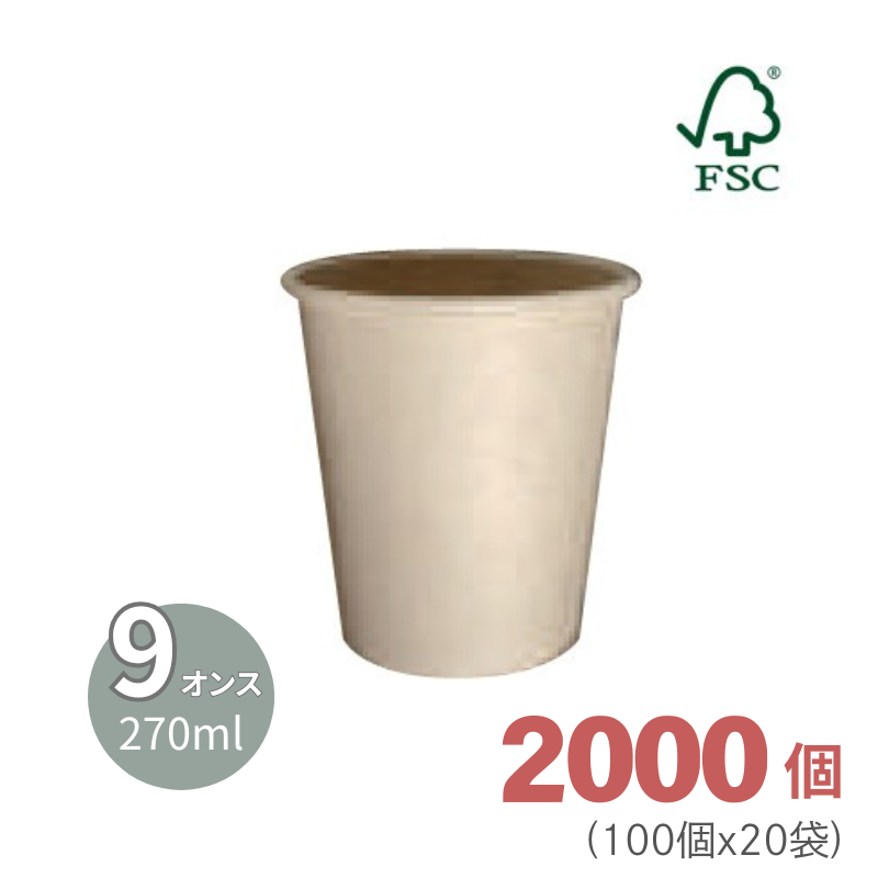ファーストレイト 紙コップ F未晒しコップ(FSC認証)9オンス (270ml) FR-5637[2,000個入]