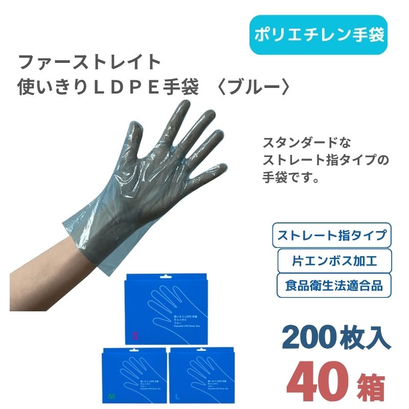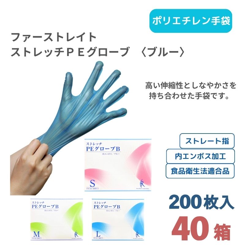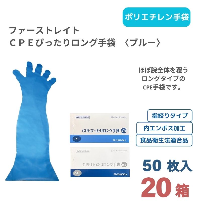 ファーストレイト CPEぴったりロング手袋 ブルー 50枚[20箱入] 全2サイズ(S/M~M/L)【ポリエチレン(PE)製手袋】