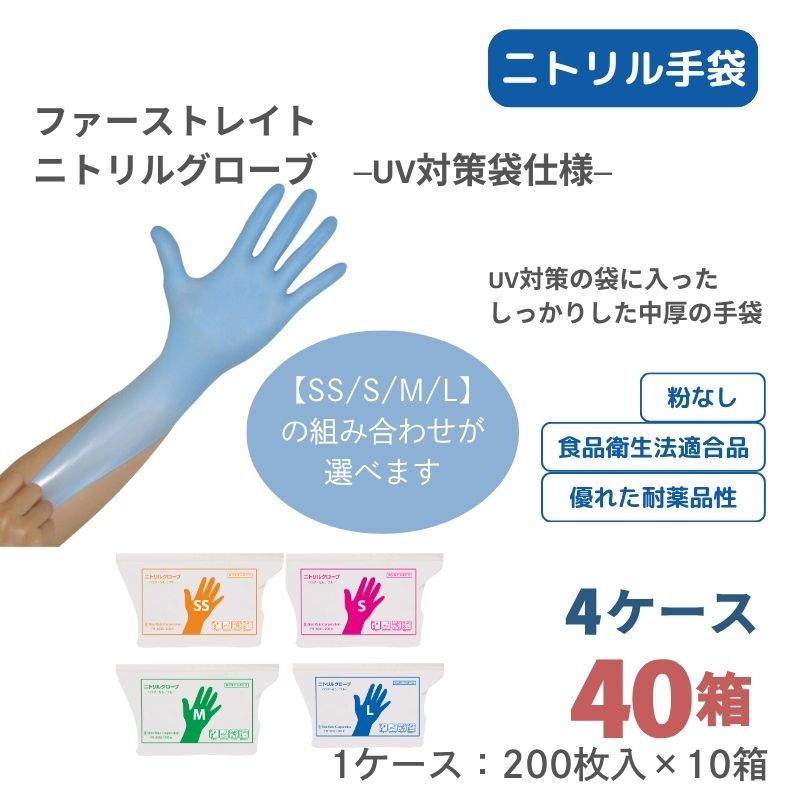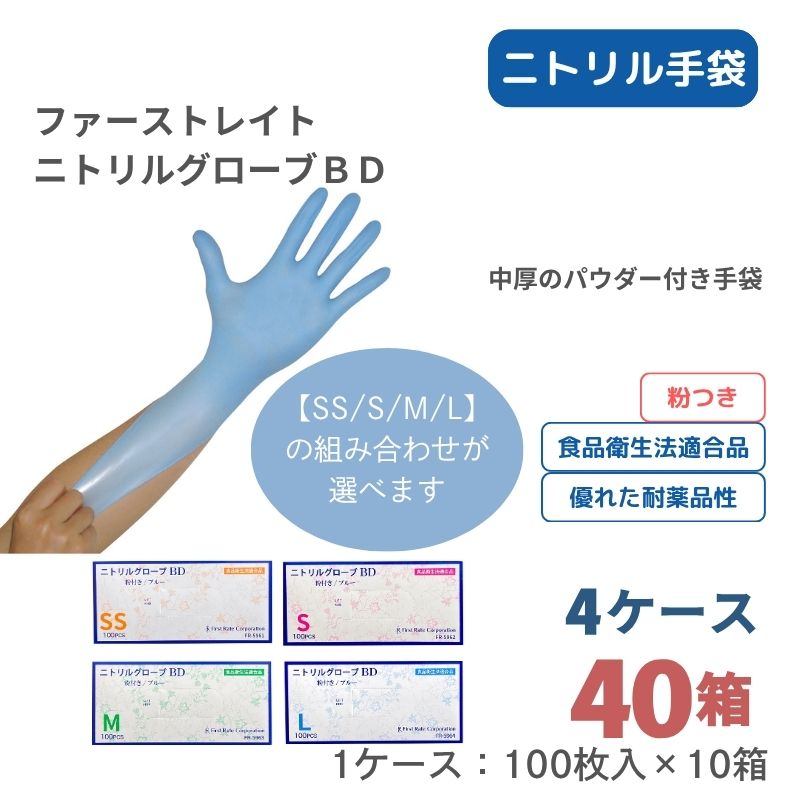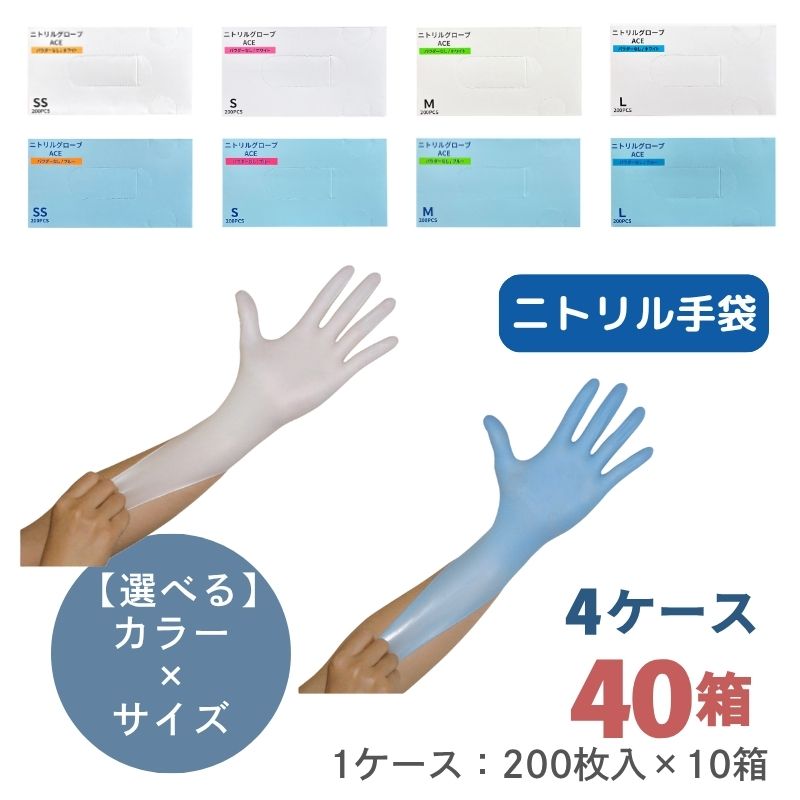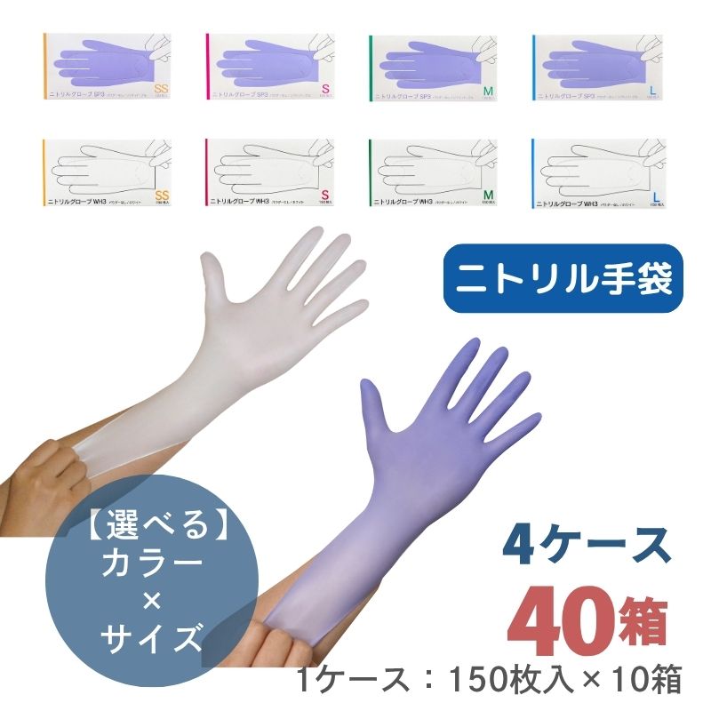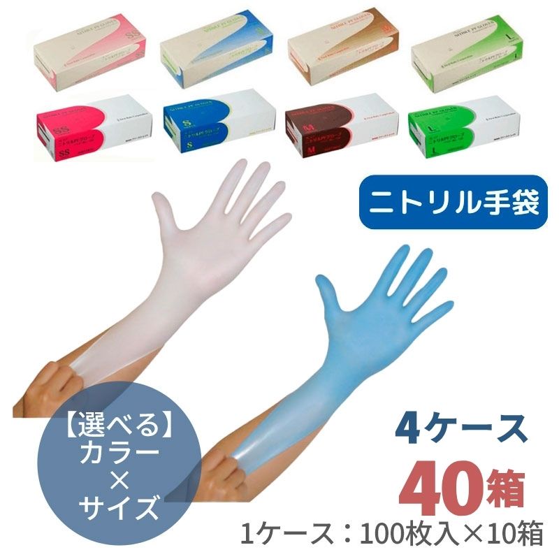【組み合わせ自由!サイズ混在OK、選べる4ケース】ニトリルグローブV [100枚×10箱] ×4ケース 合計40箱